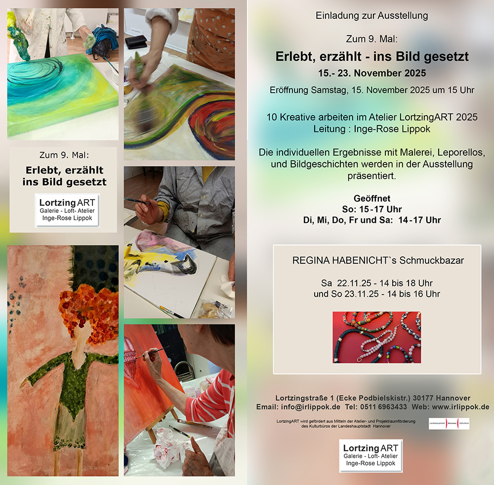 Nehmen Sie Platz. Zum letzten Mal. Nach 18 Jahren schließt die Künstlerin Inge-Rose Lippok ihr Atelier, das zugleich auch Galerie, Konzertsaal und Literaturtreffpunkt war. Was bedeutet: Unzählige Ausstellungen und Veranstaltungen, Künstlerinnen und Künstler aus aller Herren und Damen Länder, Ölbilder, Videos, Performances, Prosa, Lyrik, Fotos, Skulpturen, Klassisches und Experimentelles – kurz: der ganze Kunstkosmos auf 100 Quadratmetern in der 4. Etage. Oft unterstützt vom Kulturbüro der Landeshauptstadt Hannover. Und immer bunt, anspruchsvoll und überraschend.